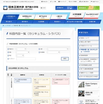 日本工業大学のシラバスは、ちょっと探しにくいところにあるのですが、