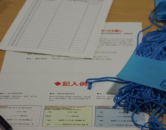観覧者は、写真のように台帳に記入し、カードを発行してもらって入室します。
