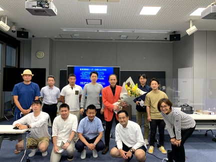 大盛況の講義修了後、参集した有志代表の、13期生吉田さんより花束の贈呈が行われ、お開きとなりました。