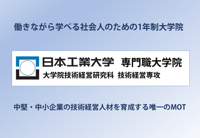 そこでネット検索で調べていたところ「中小企業の技術経営にフォーカスしている」「働きながら1年で技術経営力を身につける」事を特徴として「スタディサプリ」内で日本工業大学専門職大学院が紹介されており、その存在を知りました。