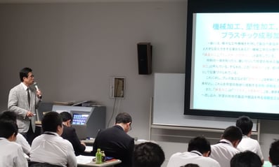 『中小製造業への提案に向けて、その変化と課題の理解』というテーマで、日本工大MOTの卒業生企業の事例などを紹介しながら、『製造業が何を課題として取り組んでいるか、またそれに金融機関がどのように支援できるか』を理解していただきました。
