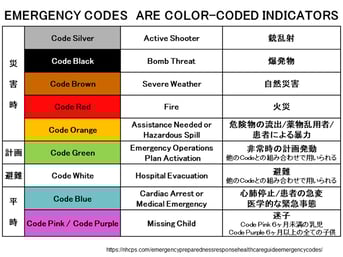 しゃぶしゃぶ浜田が備えている7種類の危機とは、Emergency Codes として国際的に標