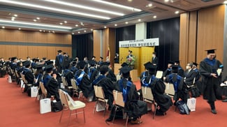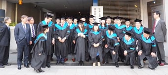 最終試験での特定研究課題の発表、そしてその研究内容を認められての学位授与。