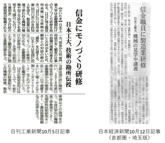 日本工大で本年度から取り組んでいる『金融機関向けモノづくり研修プログラム』が、日刊工業新聞・日本経済新聞等に紹介されました。